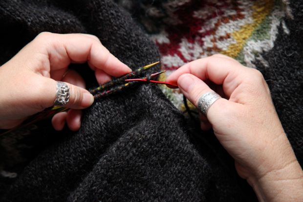 Maja Karlsson har skrivit om förkortade varv på sockor på Järbobloggen men det går fint att applicera på tröjor också.