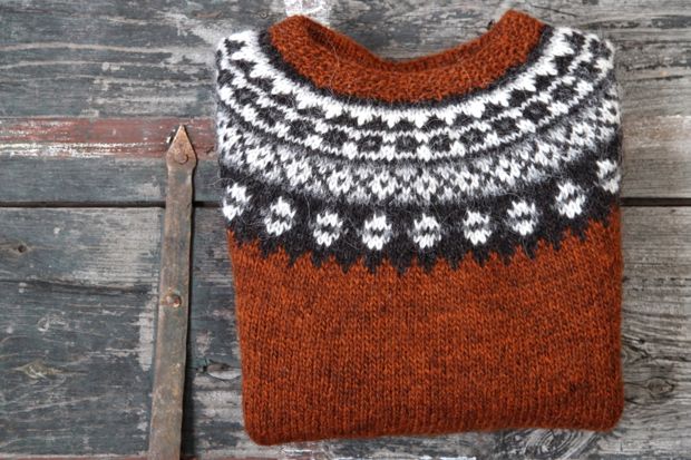 I vilken ordning du sedan stickar ihop delarna beror på om du stickar en tröja eller en kofta. På tröjan börjar och slutar alla varv bakom vänster axel, mellan bakstycket och vänster ärm.