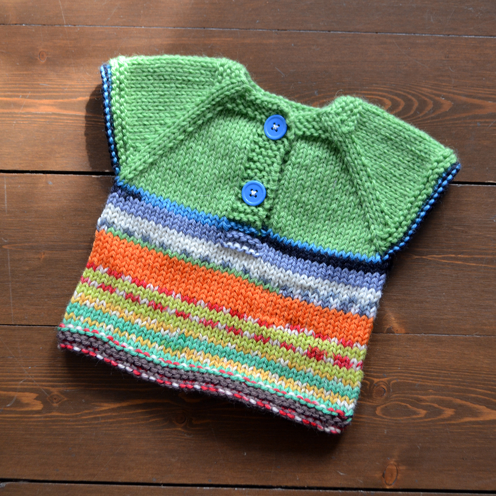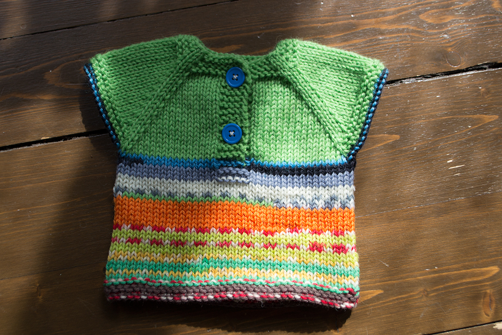 Det går naturligtvis att förlänga sprundet en bit, och det kan nog vara en bra idé för den minsta storleken. Vet du vem som ska ha västen, och vet du att vederbörande protesterar mot kläder som ska dras över huvudet, så sticka en Ragnhildvästistället – den är helknäppt.