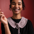 En elegant krage med icord-kant. Dekorerad med popcorn och hålmönster.