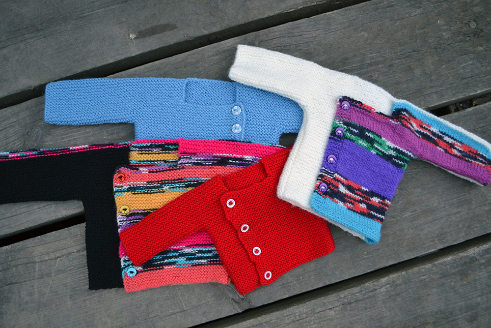 Variation: Vill du ha knytband istället för knappar tar du bort 3 maskor i mitten på vardera framstycket.