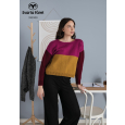 Tröjan stickas nerifrån och upp i tre olika färger med en delad midjemudd. Bålen stickas runt, med ett färgbyte strax innan ärmhålet. Ärmarna stickas runt uppifrån och ner i en tredje färg och avslutas med en mudd. Halsringningen avslutas med en i-snodd.