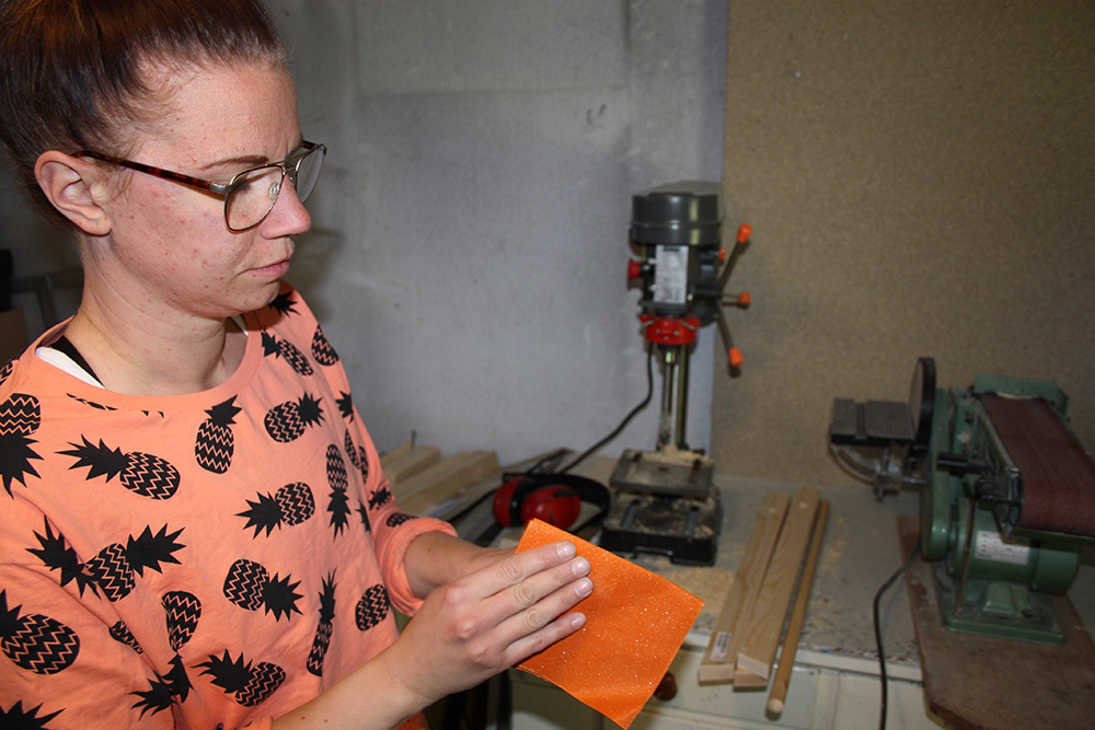 Ta sandpapper och slipa till kanterna och hålen så allt känns lent. Sätt ihop delarna och bestäm hur mycket av rundstaven som ska sticka ut på sidorna.