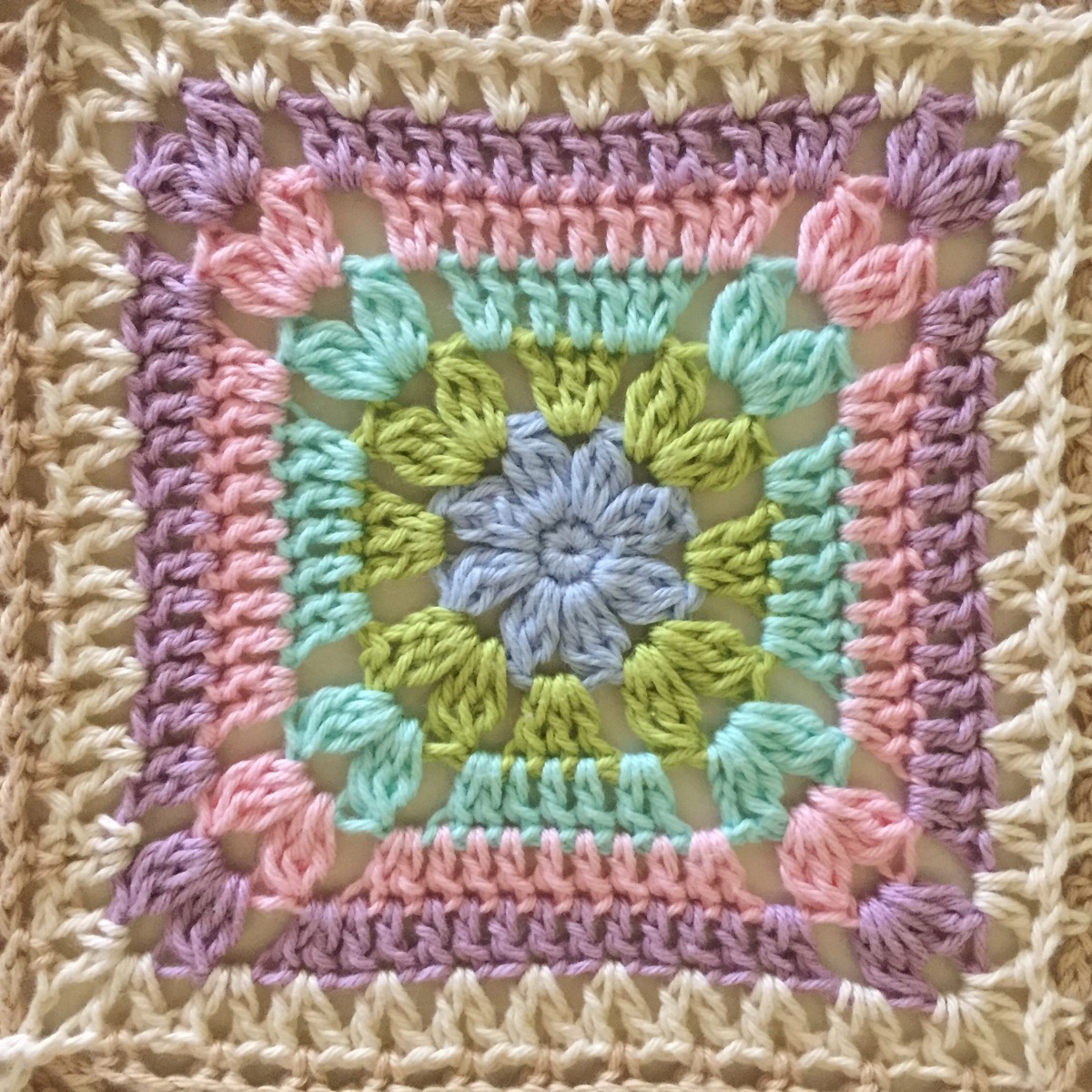 Våren är här!…. Dagarna är ljusare och längre man mår så bra, man finner ny inspiration av naturen som blommar ut. Jag har virkat mig en pläd i ljusa våriga härliga färger, det är rätt skönt att sitta att virka rutor, man behöver inte tänka så mycket på vad man virkar, utan kan ha tankarna någon helt annanstans, nackdelen kan ju dock vara alla trådar som man behöver fästa, så därför valde jag att virka en ruta med fler färger medans den andra fick nöja sig med endast 3 färger, några trådar mindre att fästa…