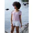 Blockning och tvättning: Garn kan färga av sig när det ligger fuktigt en längre stund. Var extra varsam vid blockning och tvättning av plagg med starka kontrastfärger. Fukta arbetet, gärna med en sprayflaska, krama försiktigt ur eventuellt överskottsvatten i en hoprullad handduk. Lägg arbetet att plantorka och spänn ut det efter angivna mått.