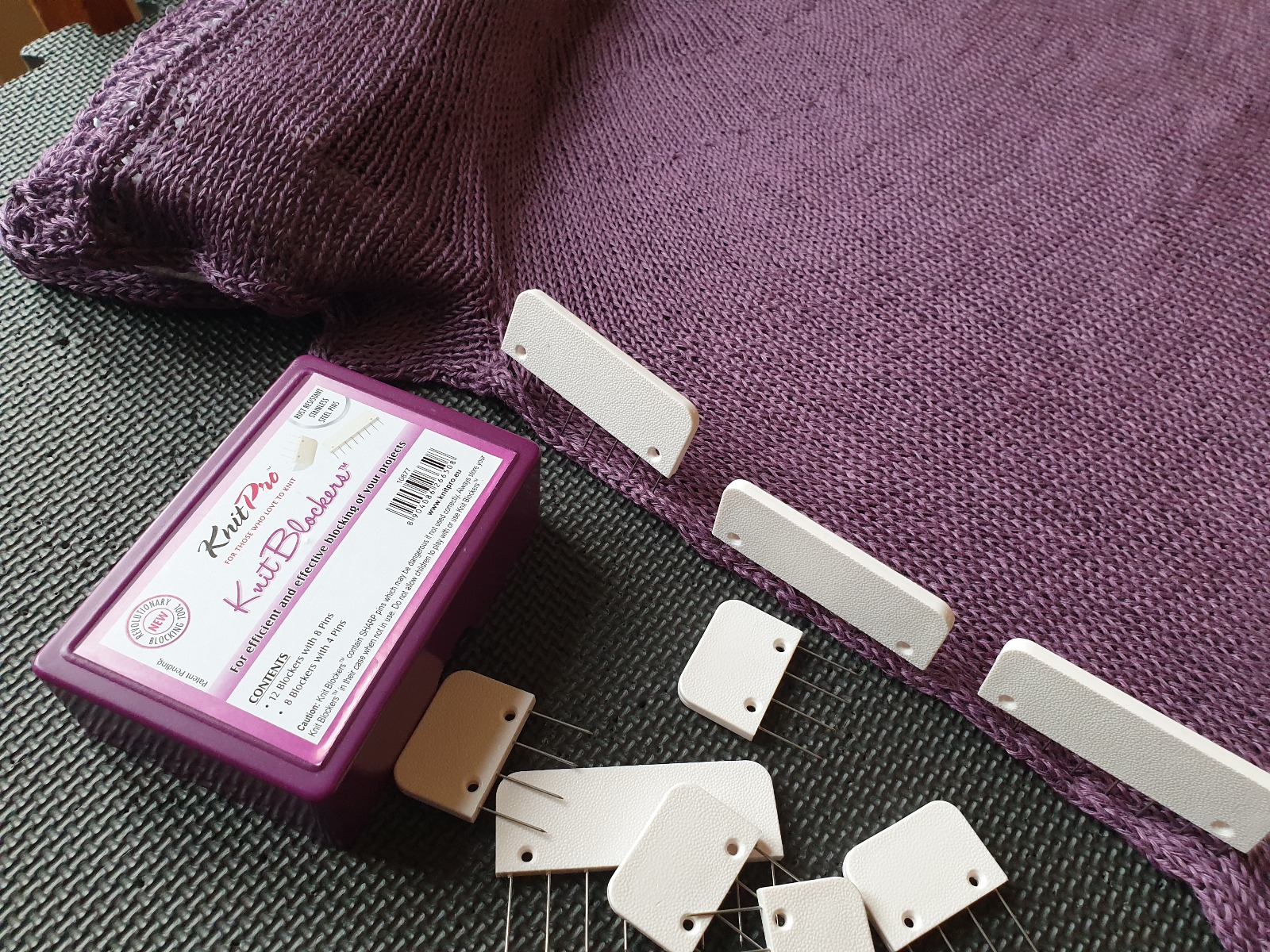 Om du vill ha den oversize är det bättre att blocka den plant. Du kan lägga den på blockningmattor och fästa med blockningskammar som jag har gjort här. Om du inte fäster tröjan kommer den att dra ihop sig och blir därmed inte så oversize!
