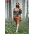 Till denna snygga tröja kan du välja dina favoritspår från skogens djur - björn, varg, lo eller älg. Tröjan på bilden har björnspår. Tröjan stickas uppifrån och ned, vilket gör den lätt att prova under arbetets gång. Muddarna stickas i tvåfärgade vertikala ränder, som utgör en fin detalj.