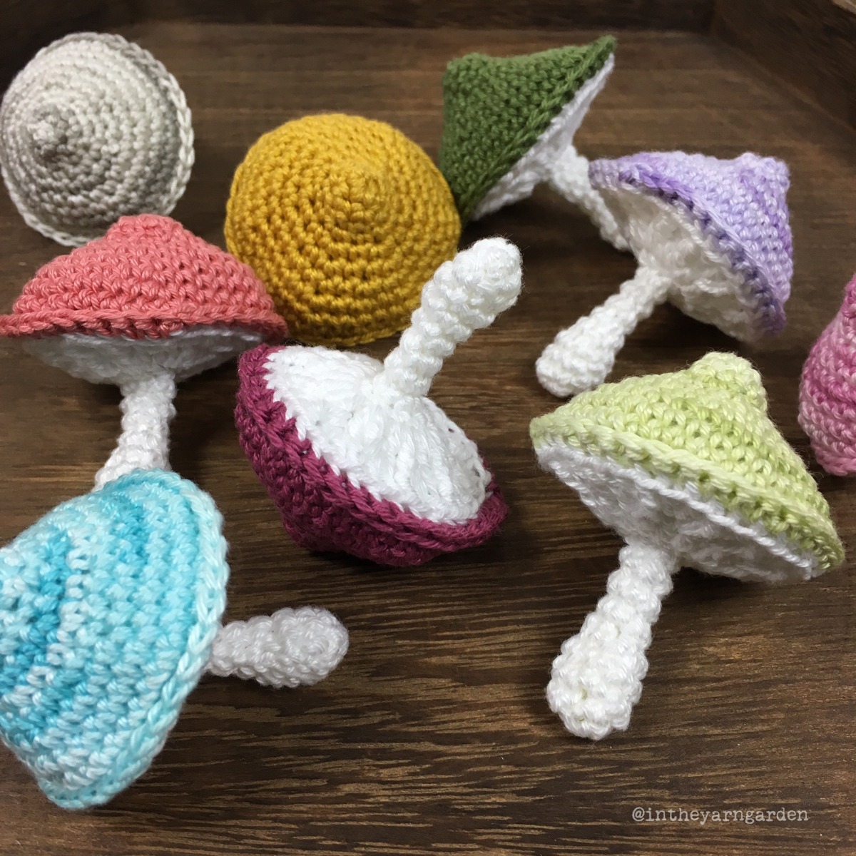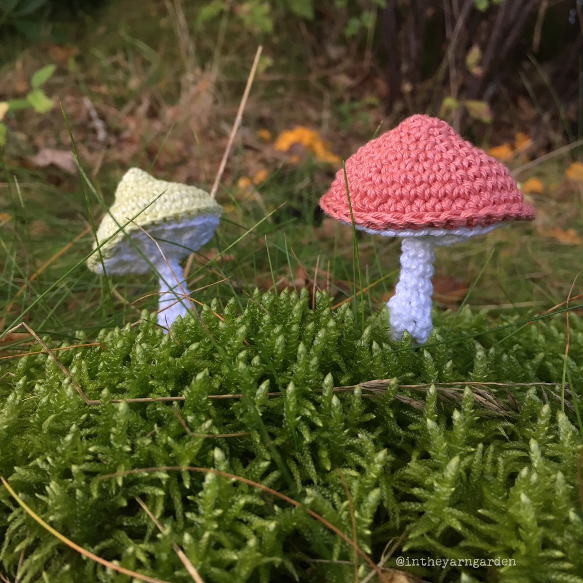 Jag erkänner att jag blev smått beroende av att virka svampar under tiden som jag skapade det här mönstret. Jag skulle helst haft en i varje garnfärg som jag äger