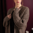 Virkad långkofta med ballongärmar i vackert spetsmönster. Tencel Blow-garnet har lyster och ger koftan karaktär men är också mjukt och gör den skön att bära. Du börjar med bakstycket och virkar i rader tills det är dags att dela för framstyckena. Ärmarna virkas separat och sys fast i ärmhålen. Till sist virkar du halslinningen och framkanterna.