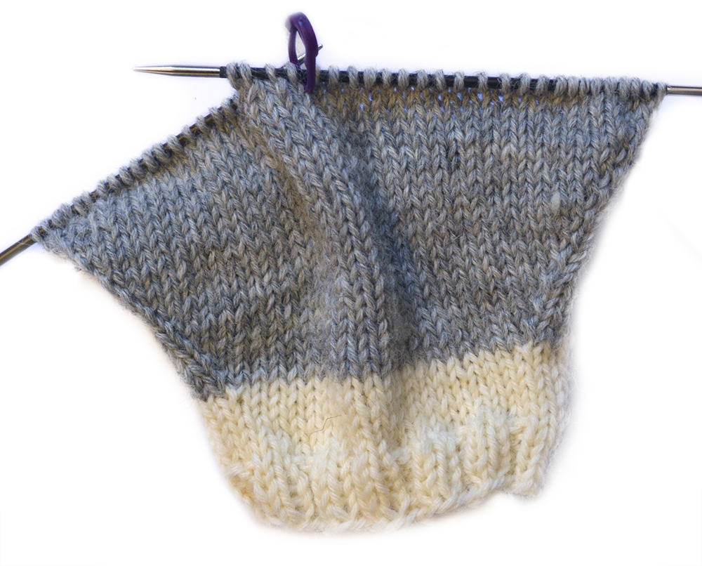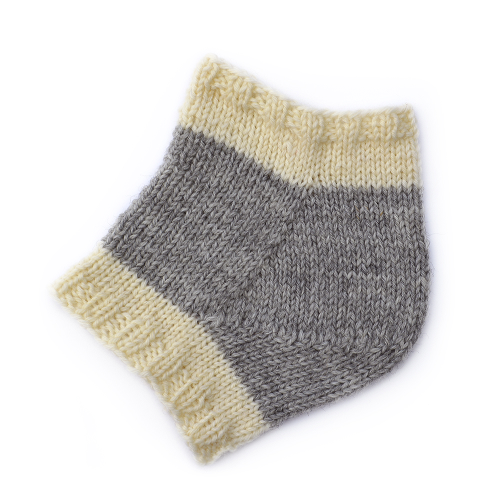 Öva gärna på hälen genom att sticka enbart detta parti. Det grå på bilden är själva hälpartiet.