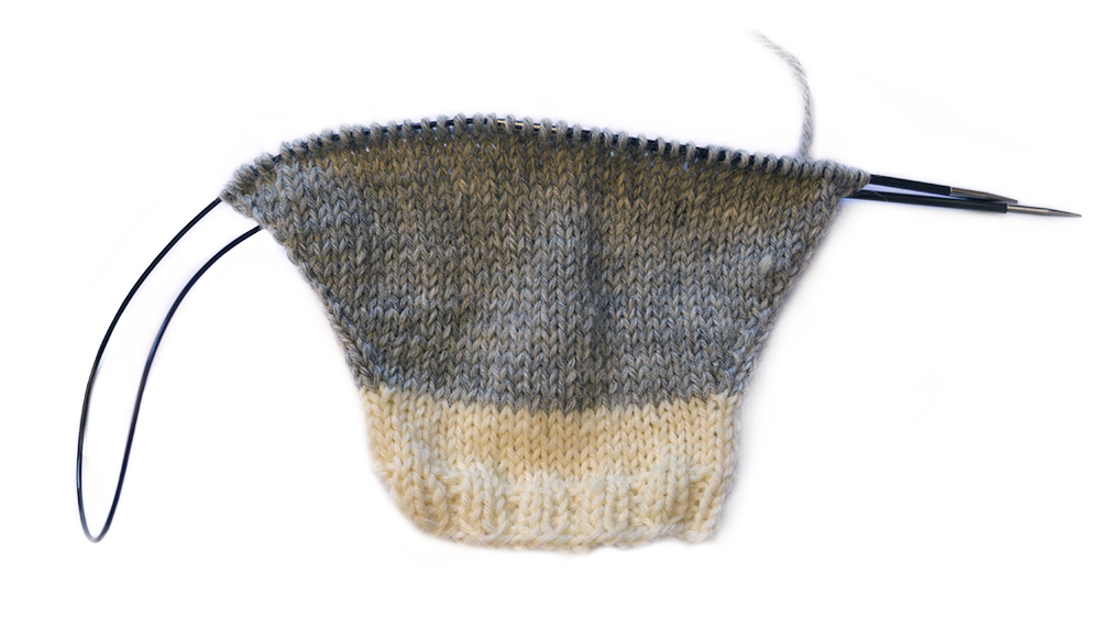 Övergå till slätstickning och sticka ytterligare 7 varv.