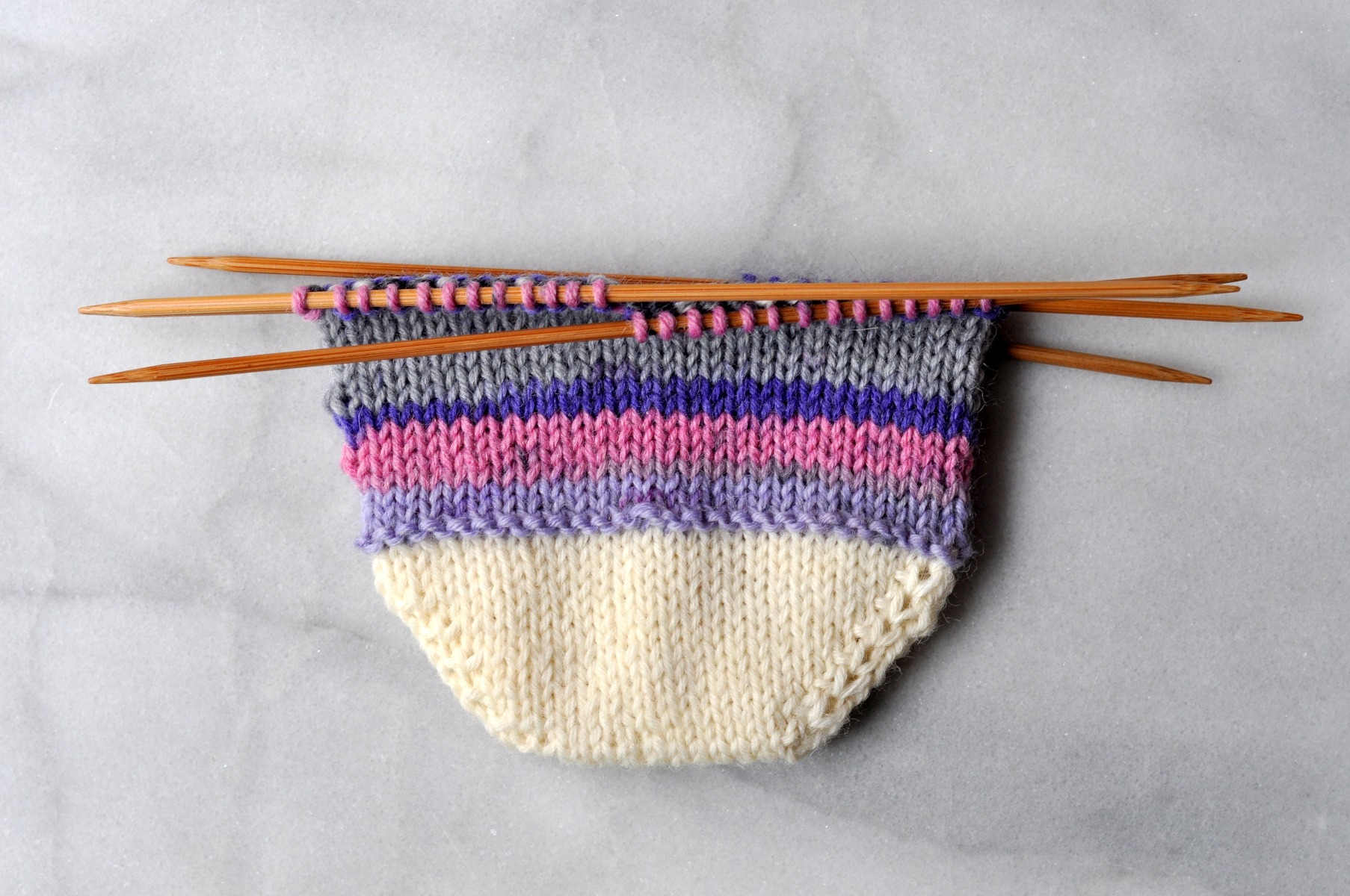 Om du stickar på strumpstickor är det lämpligt att på v 2 fördela m över 4 stickor.