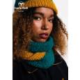 Sjalkrage i två färger som stickas nerifrån och upp. En storlek, börjar och avslutas med resår, i mitten dubbel mosstickning.