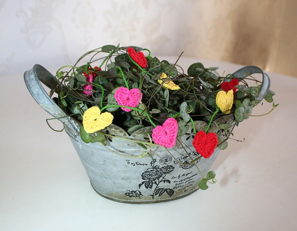 Dessa hjärtan blir också fina som girlang i en blomma! Se bara: Hjärtan på tråd.