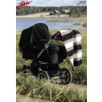 Tovad babyfilt med ränder, som värmer skönt i barnvagnen. Den kan också göras dubbelt så stor och användas som mysig filt i soffan under kyliga kvällar.