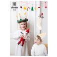 Virkat julpynt: Luciakrona, stjärngossestrut, tomte, julstrumpa och girlang.