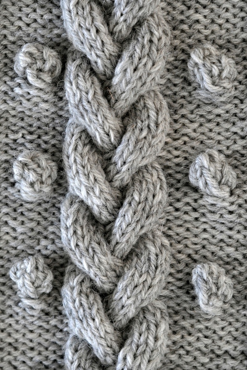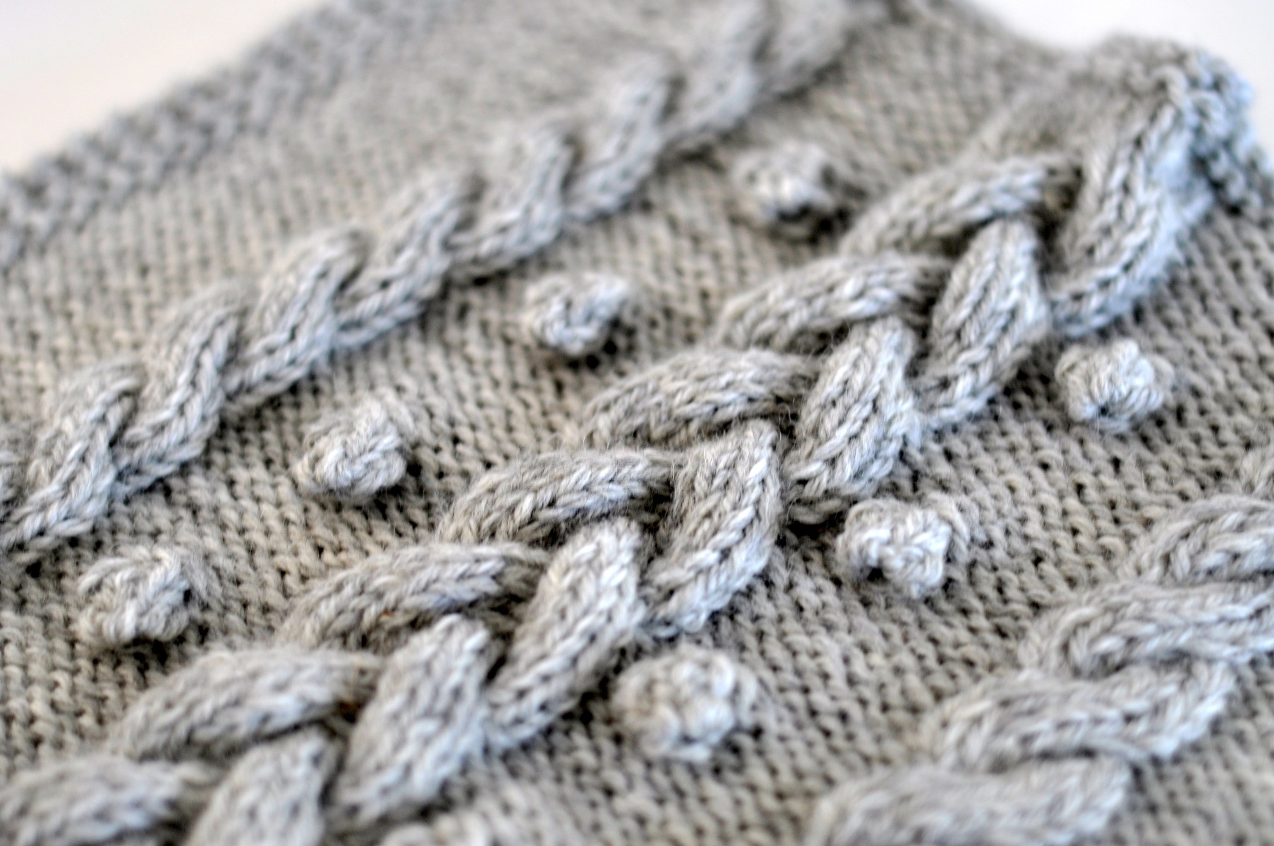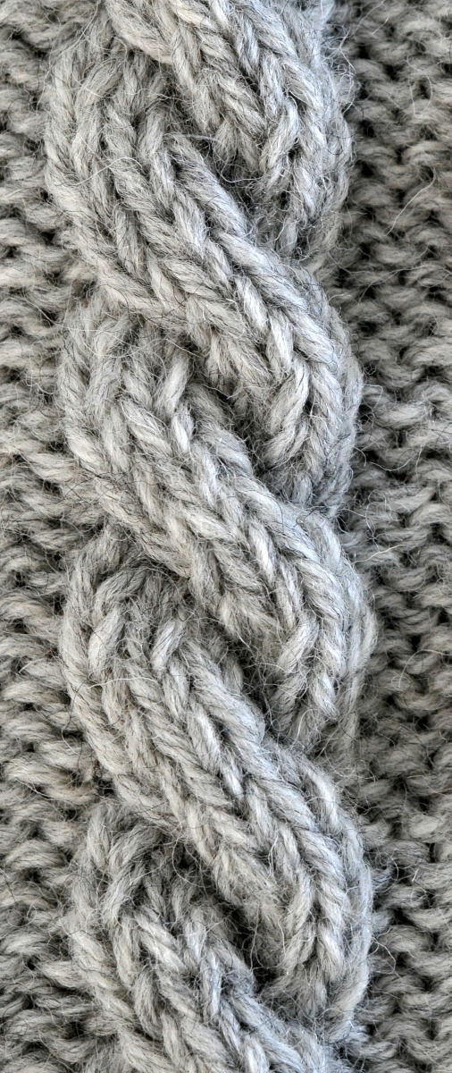 Varv 4-27 bildar flätmönstret. Fortsätt att sticka mönster genom att upprepa varv 4-27 till arbetet mäter ca 29 cm. (Avsluta med ett avigt varv.)