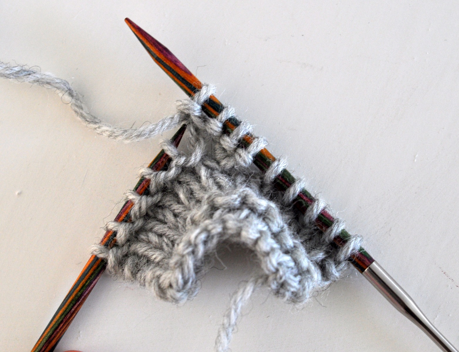 4. Vänd och sticka 4 am, vänd sedan igen. Nu ser arbetet ut så här!