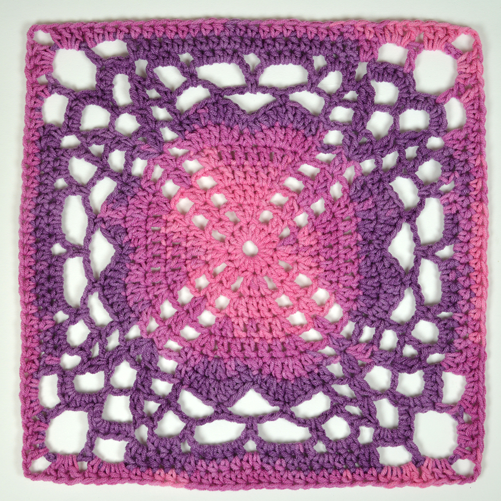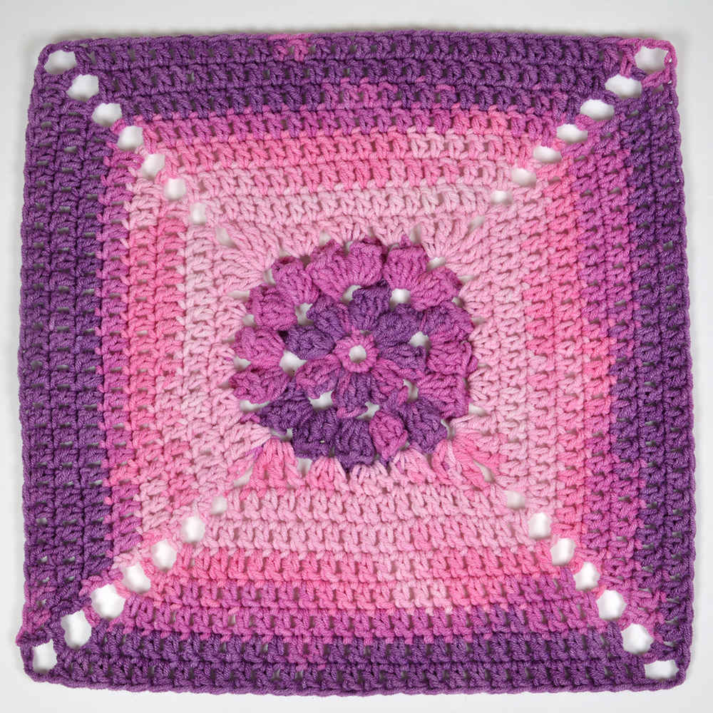 När du virkat de 6 rutorna och 2 av varje, har du 12 rutor. Då behöver vi en sista ruta.