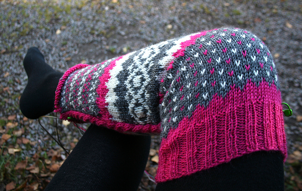 Idag står Maja återigen för designen och ett nytt moment tillkommer, vi ska nämligen börja med intagningar, så att sockan smalnar av mot vristen.