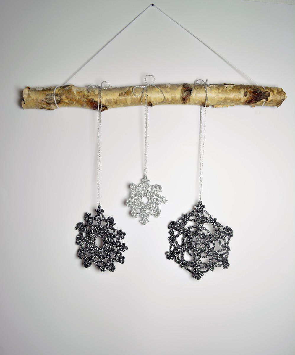 Leta på en fin gren och häng upp några virkade stjärnor. Och vad passar bättre till jul än Glittra?