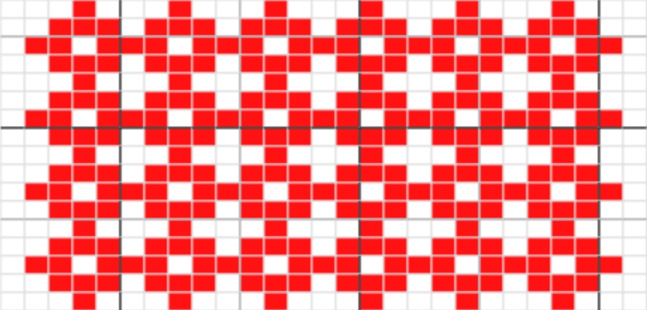 Du väljer själv hur du föredrar att placera de avslutande diagrammen. På så vis blir texten mer eller mindre synlig… Eller så stickar du mönster på hela tån – om du hellre önskar ett sådant avslut.
