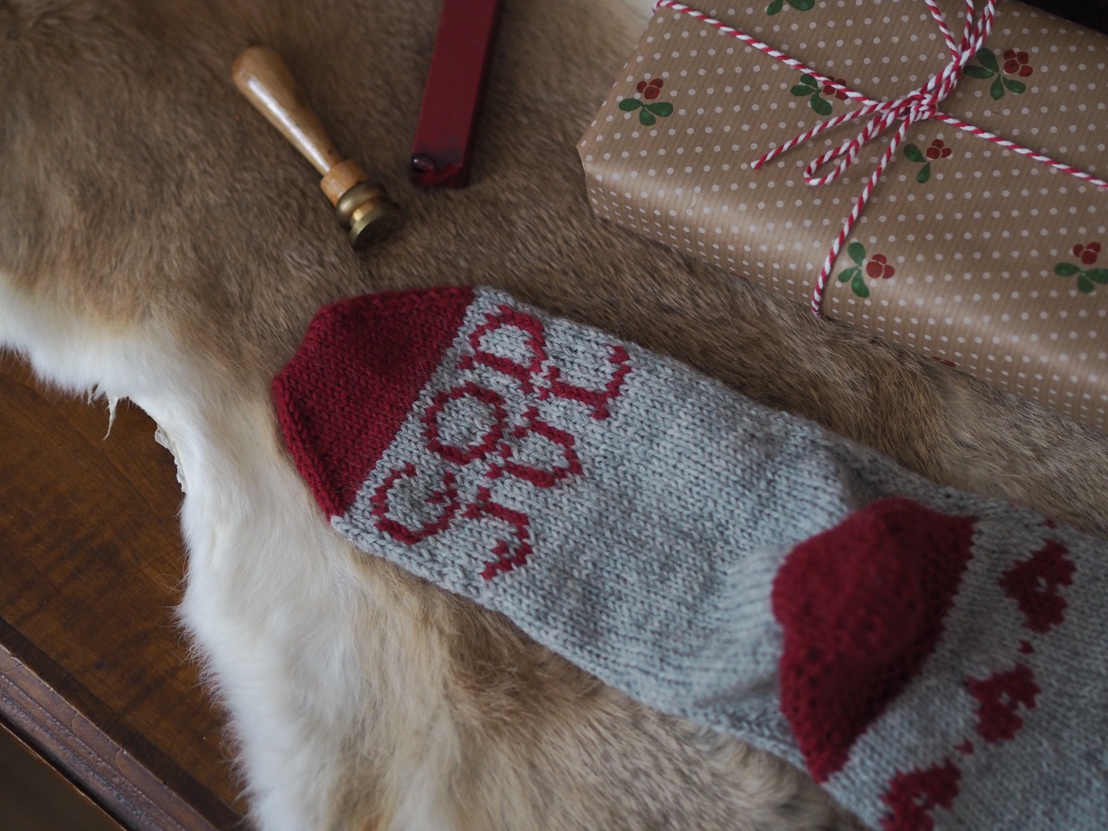 Tänk vad tiden går fort när man stickar och har det trevligt… Det har redan blivit dags att avsluta julsockan med en mönsterstickad tådel. Och hur ska väl en julsocka avslutas om inte med önskan om en GOD JUL?