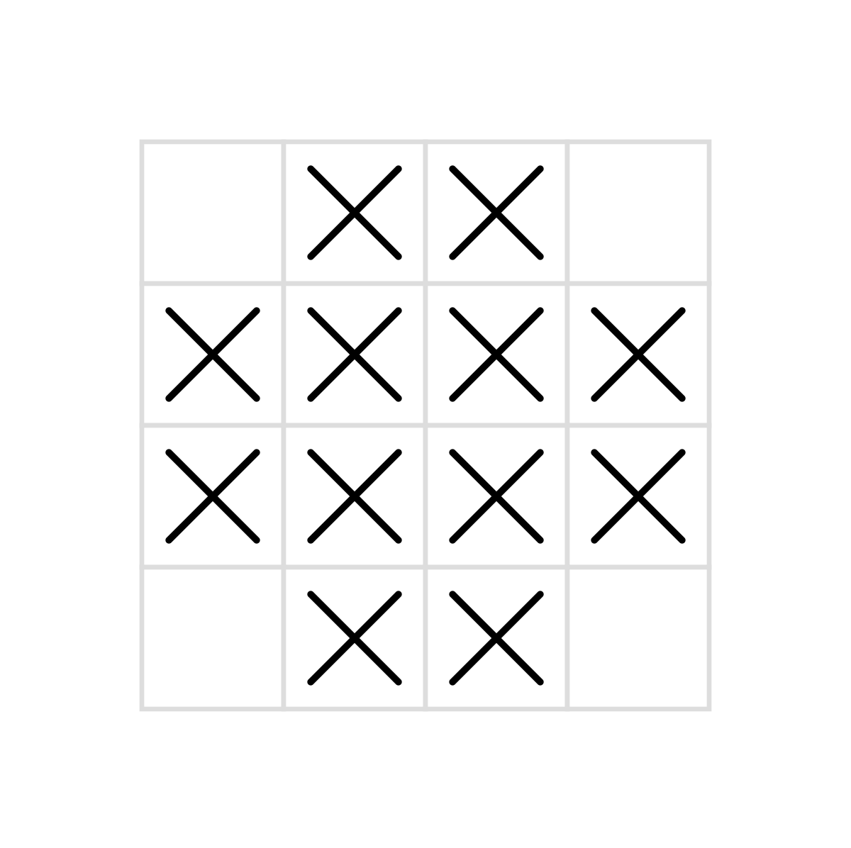 Brodera prickar med 2 tr av fg 6 enl diagram, på de vita ränderna. Första v på pricken = 5:e v på den vita randen. Placera först en prick i mitten och övriga med 8 m:s mellanrum (eller efter eget önskemål).