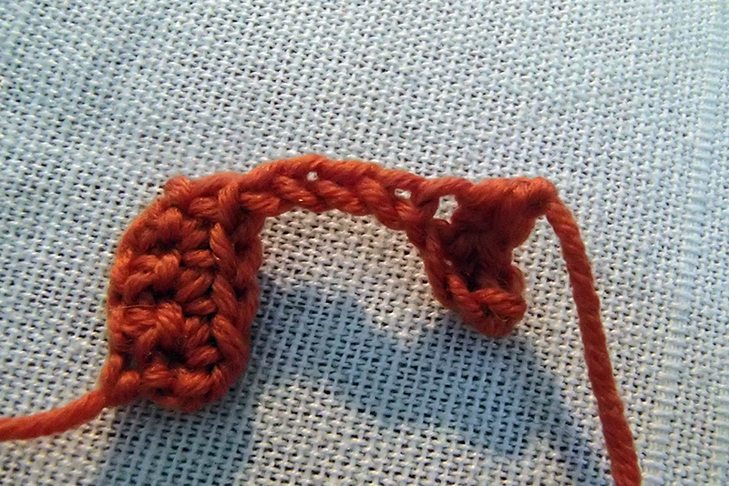Varv 6-10: Virka 1 lm, vänd, virka 3 fm