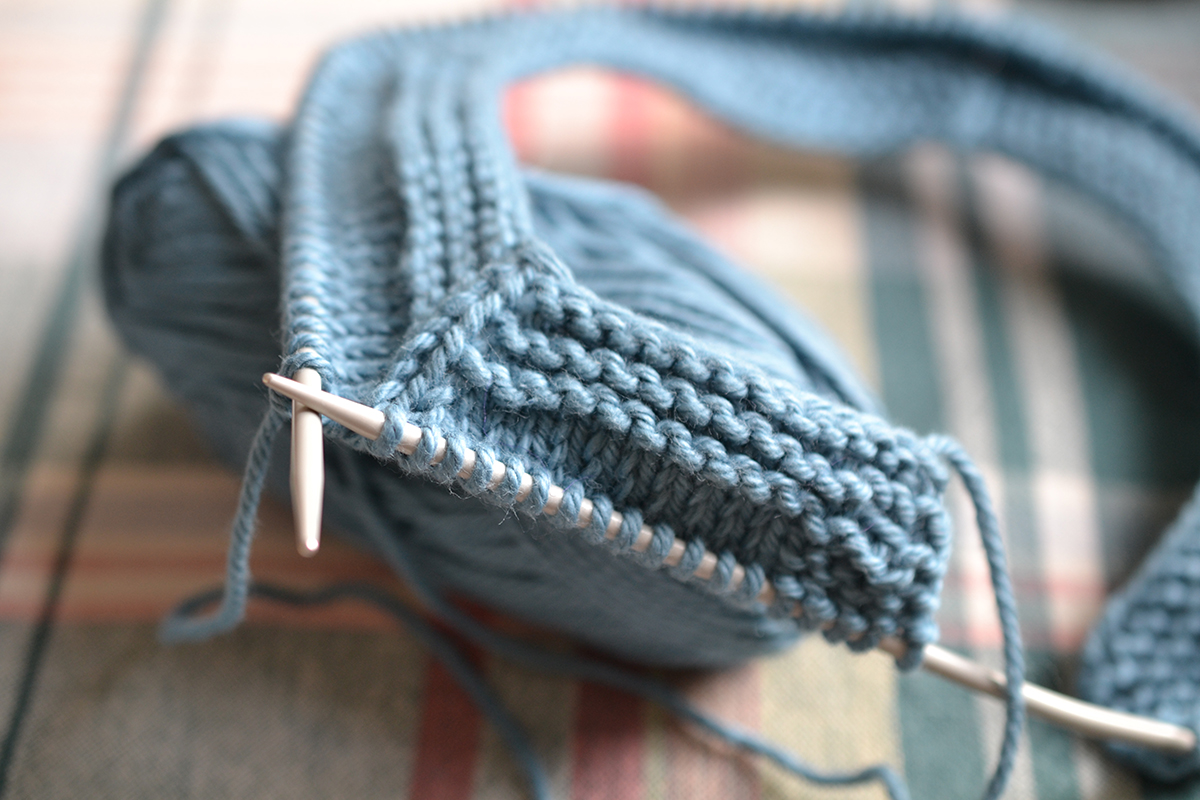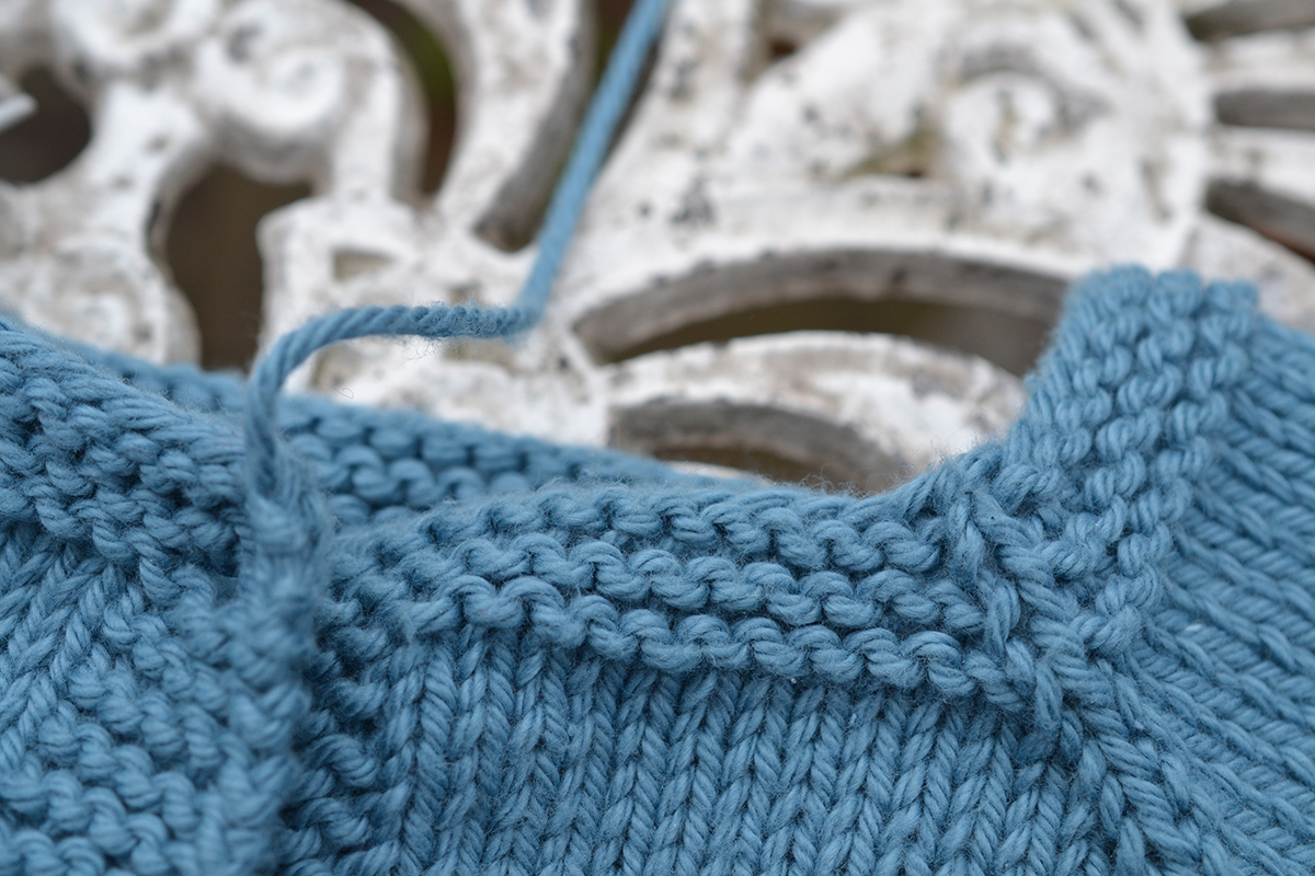 Skarven mellan garnnystan gör jag annars gärna med ryska skarvar, men det fungerar inte så bra med ett glest spunnet bomullsgarn. Bättre att fästa i efterhand, tycker jag. Det finns en del fästmetoder som lämpar sig extra bra för bomull.