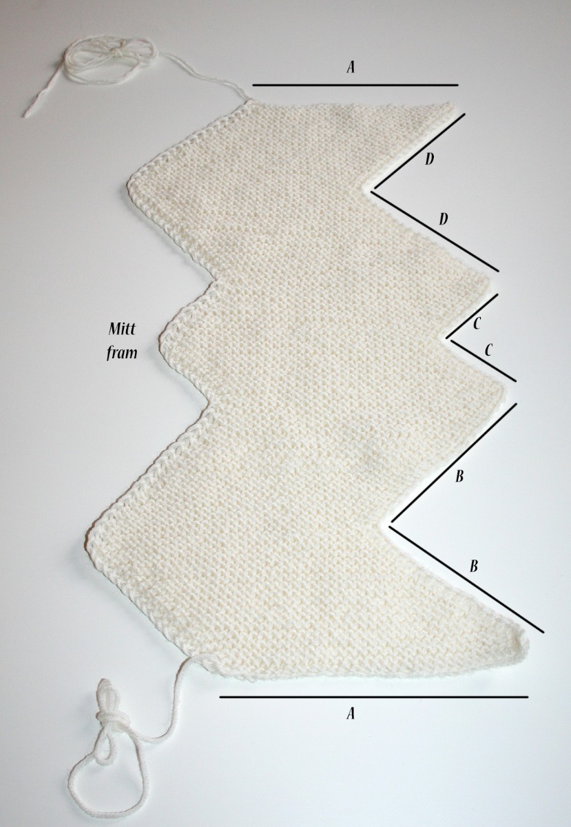 Öka sedan i början och minska i slutet v 14 (16) 18 (20) 20 ggr.