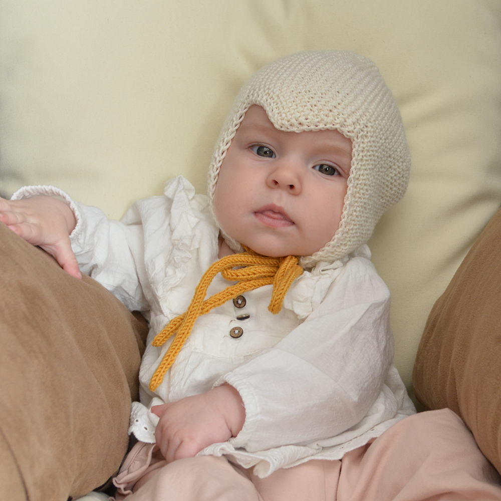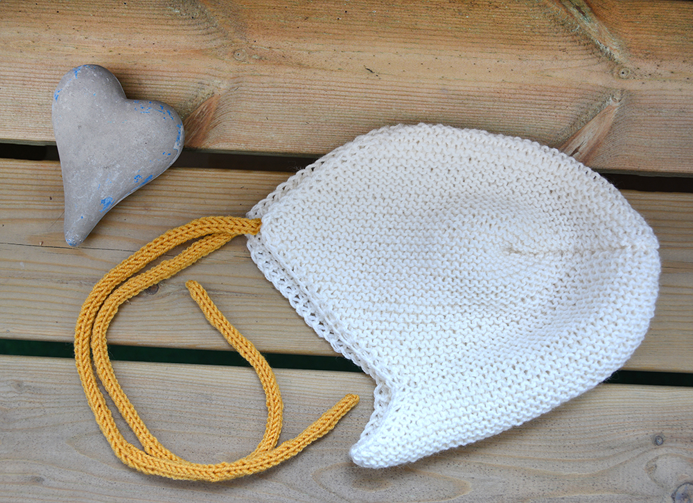 Den här klassiska modellen på bebismössa brukar kallas hjälmmössa. Du stickar en zick-zackformad lapp som sys ihop på ett speciellt sätt. Här visar vi hur du går tillväga.