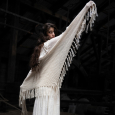 Sjal med fransar i vackra Llama Silk som virkas från spets till spets.