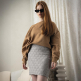 En kortare, strukturstickad, tubkjol med resårdetaljer som stickas nedifrån och upp med minskningar i sidorna. Linningen formas med kortvarv innan kjolen av slutas med resår som viks dubbel och maskas av på insidan. Avslutningsvis träs ett resårband i linningen. Med sin stilrena struktur och sitt klassiska snitt blir det en tidlös kompanjon i din garderob!