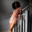 En omlottblus i ett effektfullt men enkelt strukturmönster som utgörs av räta, aviga och lyfta maskor. Den “flerfärgade” effekten skapas genom att det stickas vanliga ränder. Blusen stickas fram och tillbaka, uppifrån och ned med ökningar längs raglan och mot mitt fram för att forma omlottdelarna.