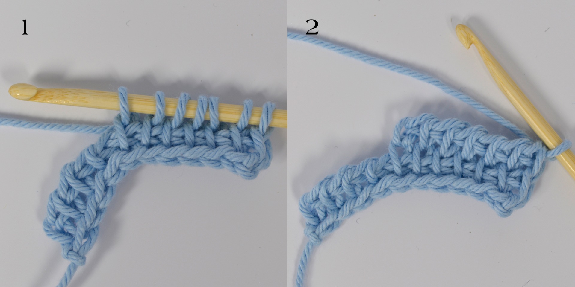 Börja med att kroka ett basvarv (se Krokningsskola: Del 1). I exemplet har vi börjat med 12 lm och har 11 m på nålen efter ett framåtgående basvarv.
