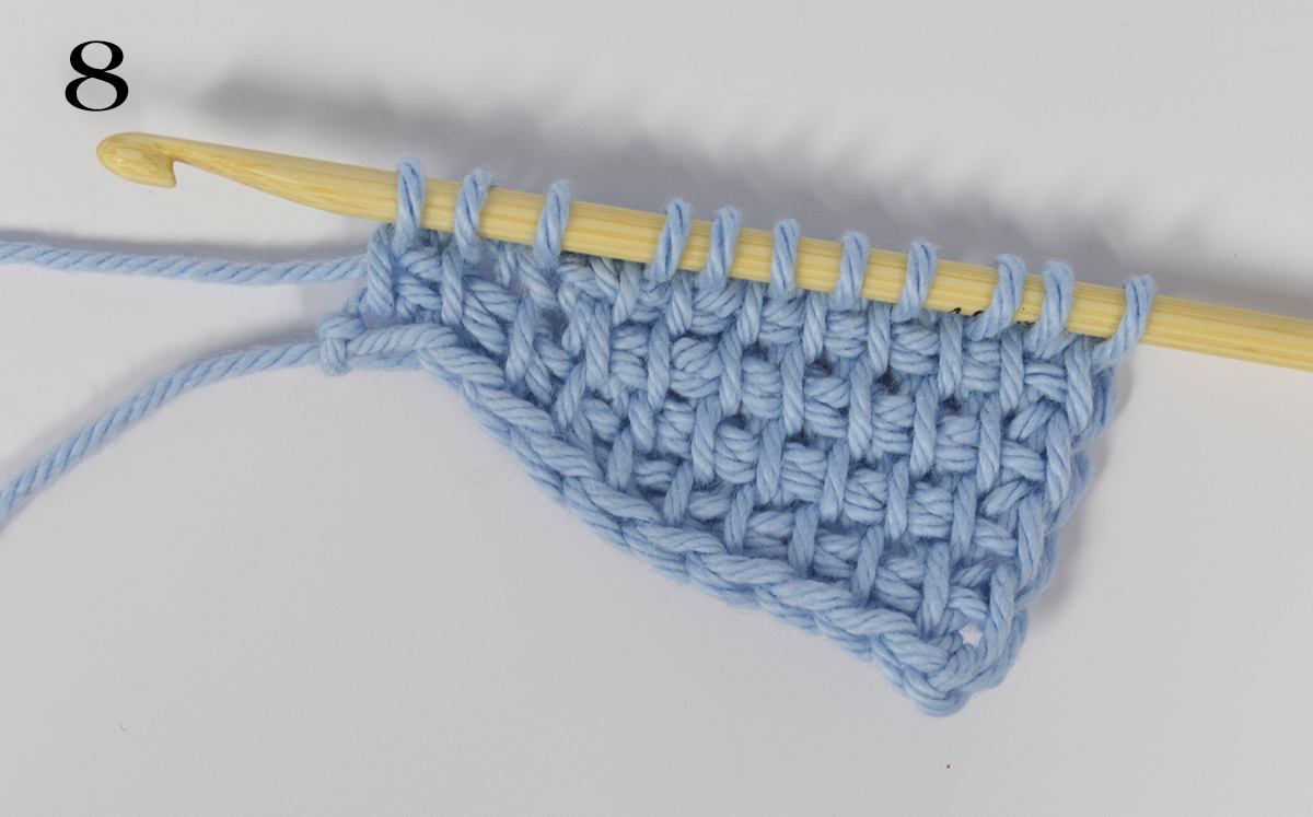 8. Fortsätter du med kortvarv ända ut till vänstra kantmaskan har du format en kil.