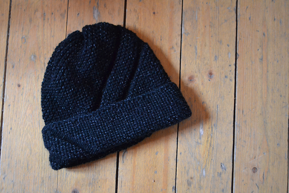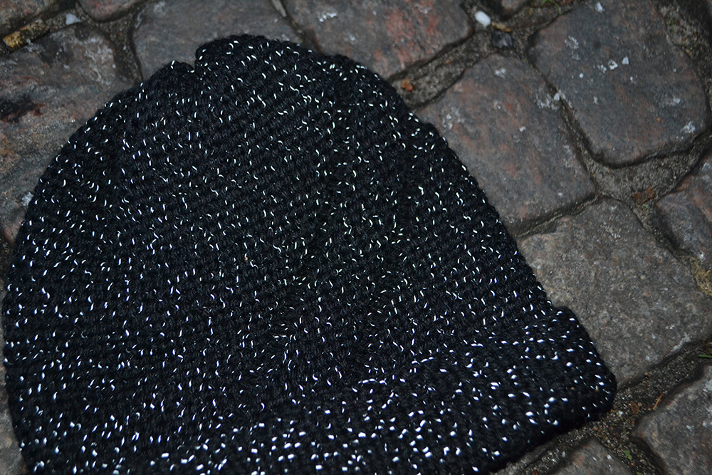 Ni har ju sett en grå reflexmössa som var stickad på snedden. Men jag fick några svarta nystan också, och det dök upp en idé till. Svart är lite mer glamour än grått, det kan inte hjälpas. Så här kommer ytterligare en mössa, enkel och lite ovanlig. Sticka den åt dig själv om du ofta är ute och går i mörkret och behöver reflektera lite extra, eller till en vän!