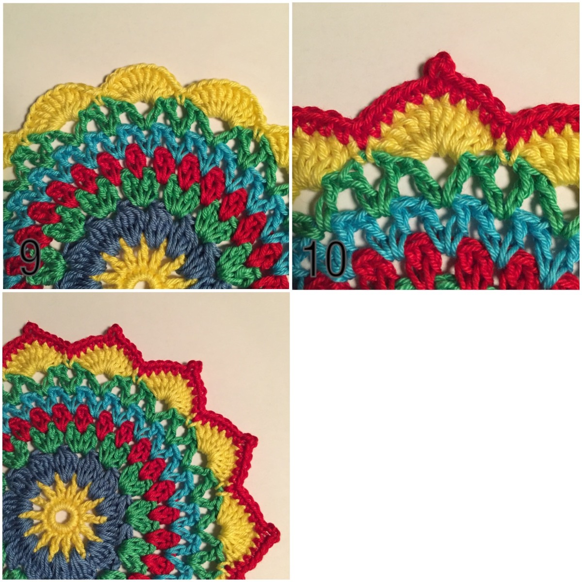 9. *9st i lmb, 1fm i nästa lmb* upprepa *_* varvet runt. Se bild 9.