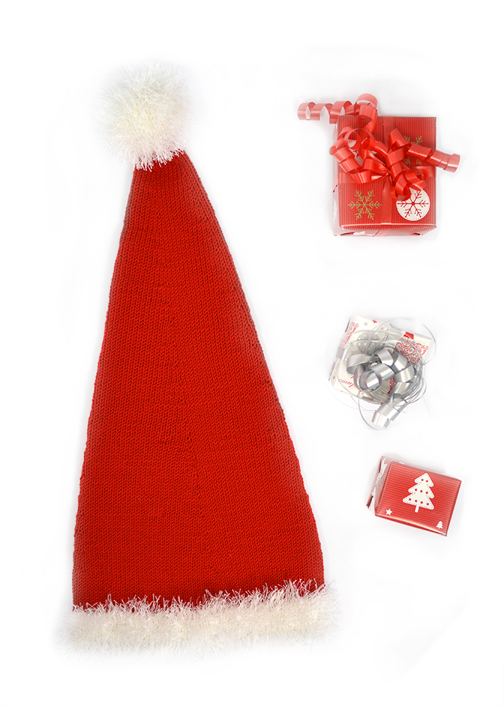 Men, han har visst tappat sin luva bland paketen.. Eftersom han nu behöver en ny passar vi i dagens lucka på att bjuda på en gratis beskrivning till denna fina tomtemössa. Varsågod!