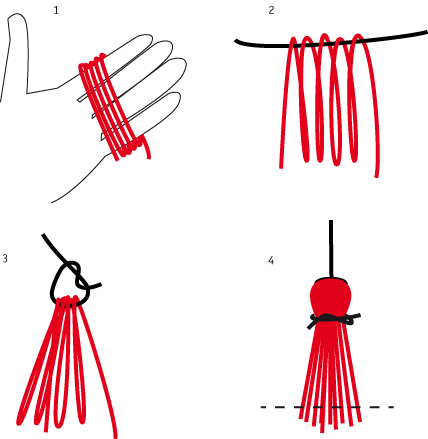 Tips: För att få kanten och tofsbollen lurvigare kan du krafsa upp Tindratrådar med nageln eller en trubbig nål.