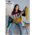 Sjalen stickas från vingspets till vingspets. Först en smalt ökande form, följt av ett rakt mittparti med en bred randning och sist en smalt minskade form. Övergångarna mellan partierna stickar du med kortvarv för att få en sned vinkel. En fin detalj är den i-snodd som löper runt hela sjalen.