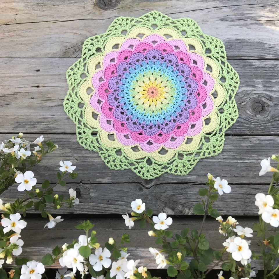 Äntligen är semestern här, och jag har fått tid till att skriva och fota ett mönster som jag vill dela med er. Jag vill även tacka alla er på instagram som kom med namnförslagen till denna mandalan och all respons som jag får utav er både på bloggen och på instagram det betyder oerhört mycket!…tusen tack till er alla