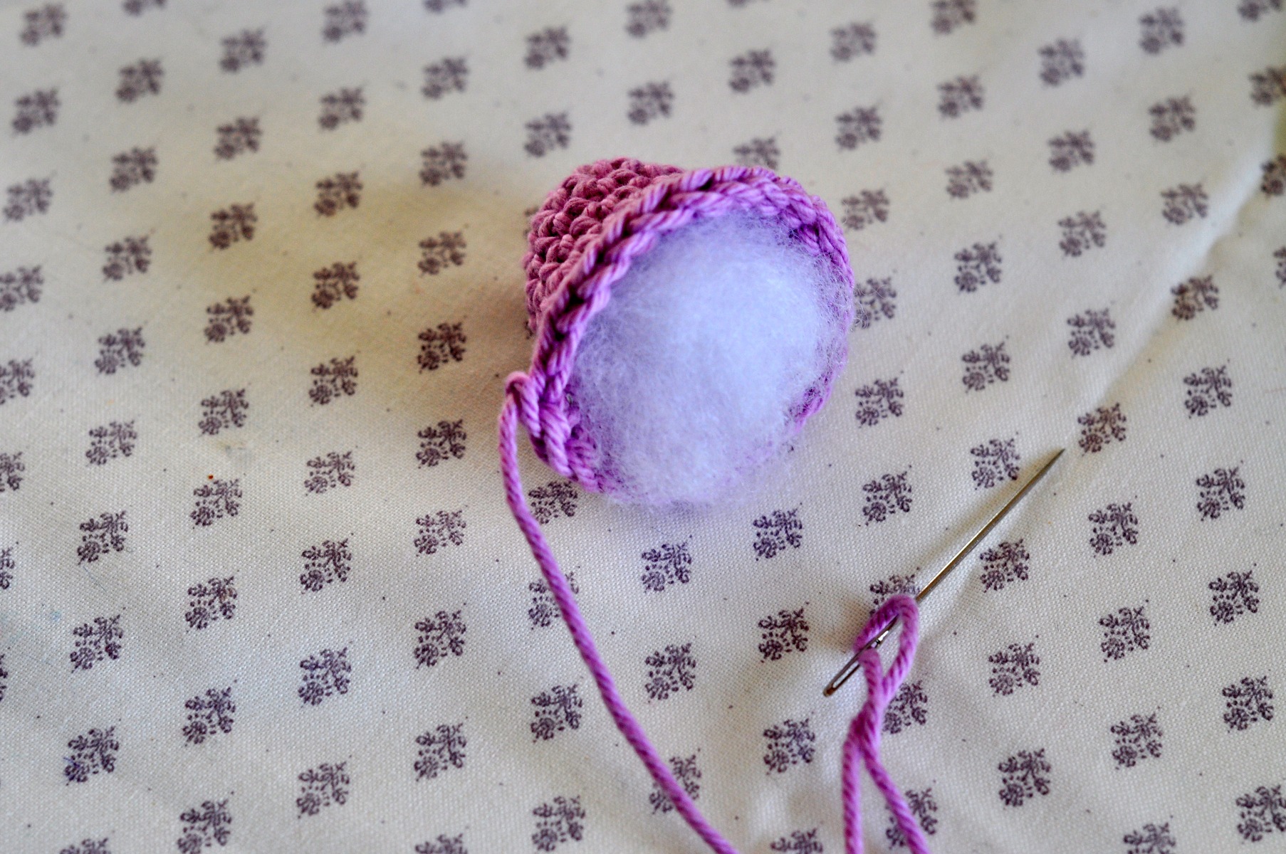 Varv 7: *2 fm, 2 fm i nästa m* upprepa från *-* varvet runt = 24 m