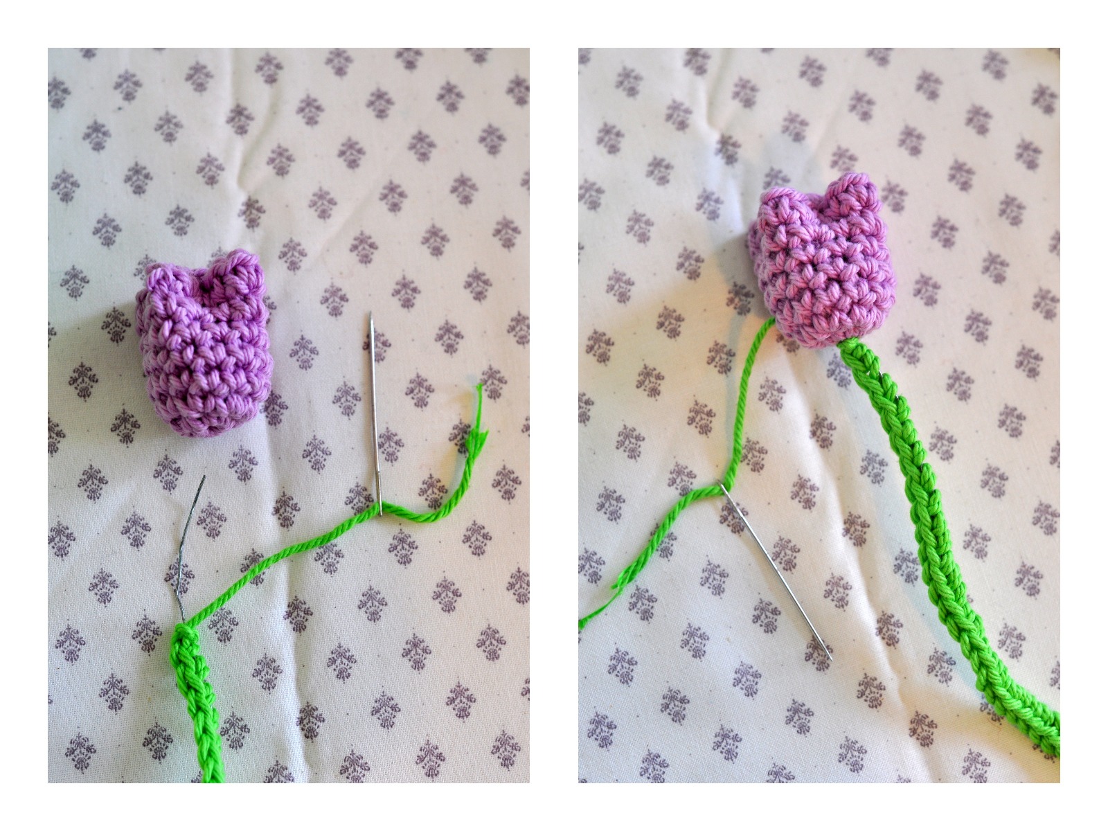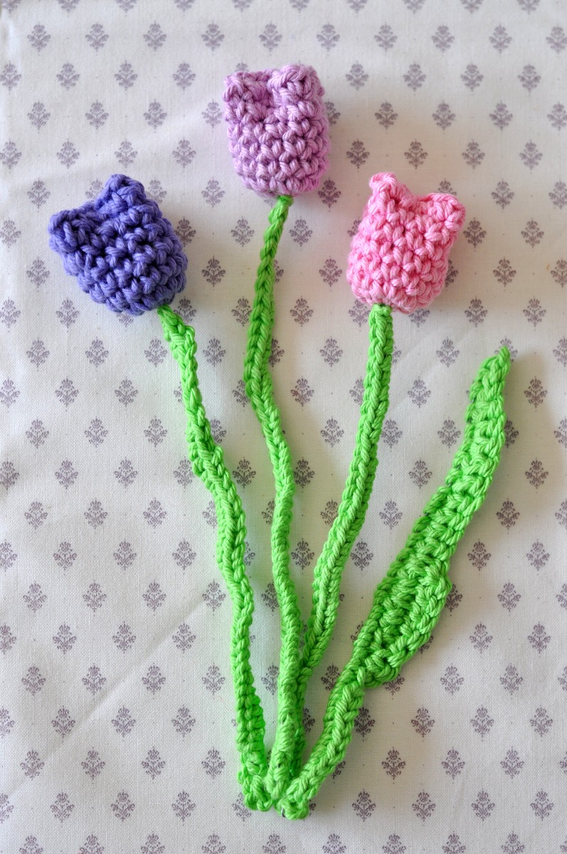 Det tar ca 15 minuter att tillverka en tulpan – så om du virkar på flitigt under en kväll kan du göra en hel bukett! Kanske något att ställa på påskbordet?