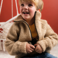 En varm och gosig stickad “fleecetröja” till barn som stickas uppifrån och ned med fickor, halskrage som viks dubbel och blixtlås som monteras med stickade infodringar längs insidan.