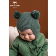 Babymössornas babymössa, en riktig klassiker, är den rätstickade hjälmmössan. Den stickas fram och tillbaka med bara räta maskor, och ökningar och minskningar i början och slutet av varven resulterar i en sicksack-form. När den har sytts ihop och fått knytband sitter den fint på bebisens huvud. Här har den fått öron av garnbollar.