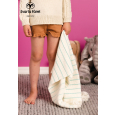 Pläden Waikiki passar de minsta och har en härlig sommarkänsla. Du virkar den i ekologisk bomull. Ränderna i en kontrastfärg gör du med smygmaskor när du har virkat hela rektangeln i grundfärgen, och fransarna fäster du också med virknål.