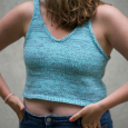Det här är ett enkelt och snyggt sommarlinne med melerad effekt. Den stickas med två olika trådar hållna tillsammans, nerifrån och upp. Fram och bakstycke stickas likadant och axlarna maskas av med maskstygn för en sömlös finish. Slutligen plockas maskor upp längs med ärmhål och halsringning och en i-cordavmaskning görs. Välj den storlek som ligger närmast ditt bystmått!