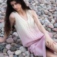 Grynna är en lätt, oversize slipover, som stickas med tre trådar Fin Mohair Silke i två nyanser som glider över i varandra. Bålen stickas runt nedifrån med ett flätmönster mitt fram och bak. Efter bålen delar du upp i bak- och framstycke som stickas separat. Till sist plockar du upp maskor runt ärmhålen och stickar resår. Du virkar även ett varv fasta maskor runt halsöppningen.